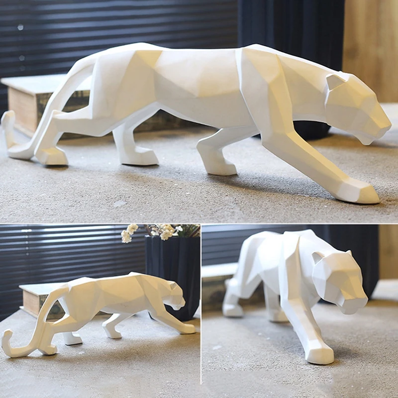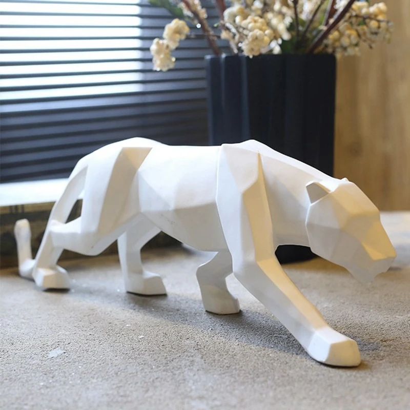 ORIGINAL Modern Abstract Black Panther Resin Sculpture Geometric Resin Leopard Statue Crafts Wildlife Art De